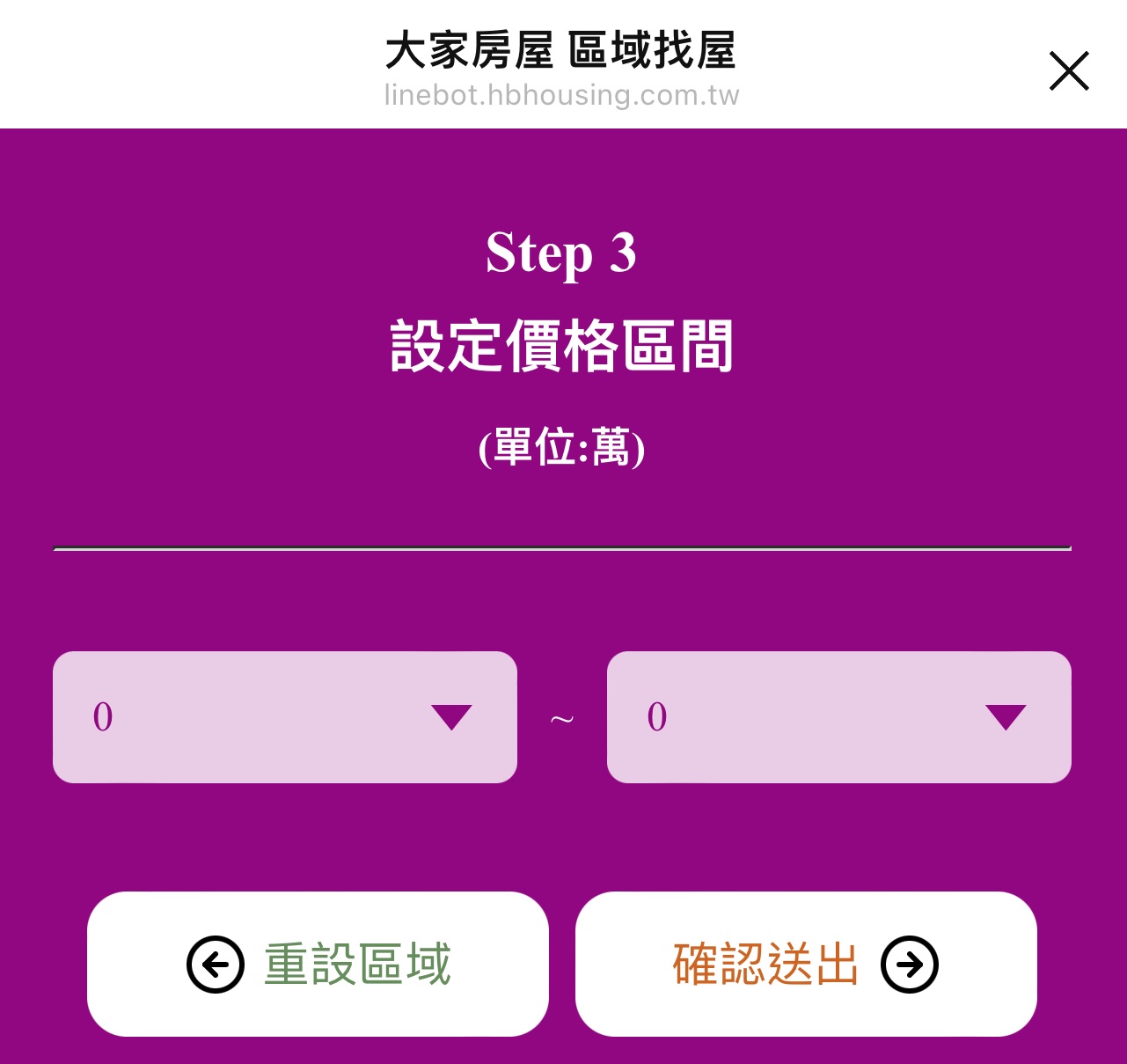設定【價格區間】確認送出