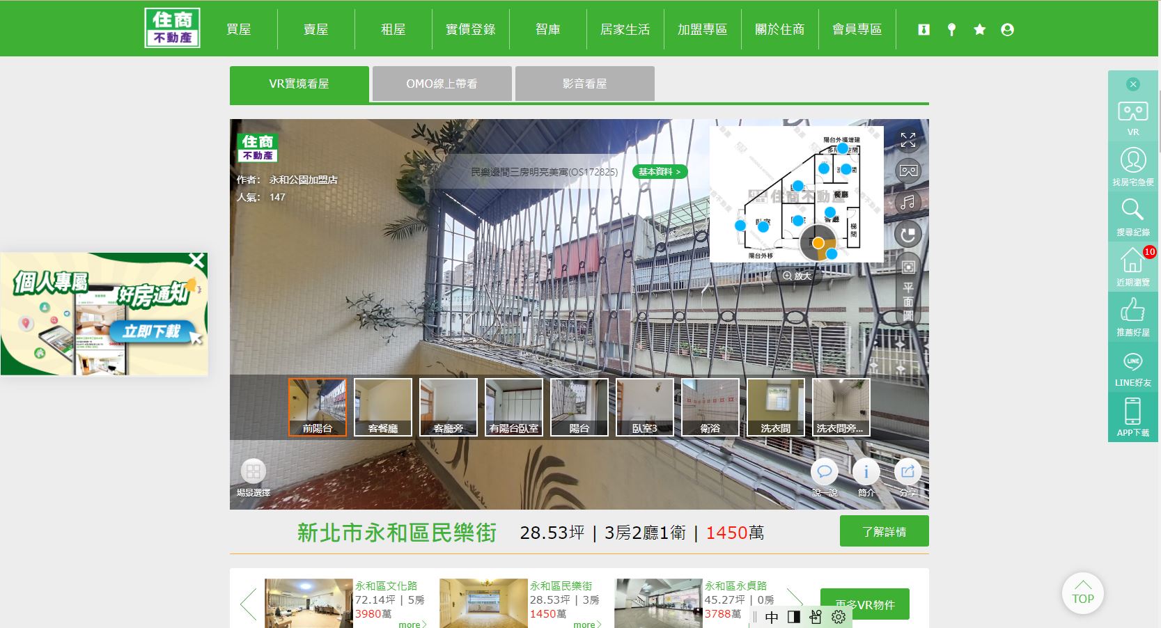 VR已是物件揭露必備的資訊之一,據相關數據統計目前至少96%的人會利用網路找房,65%的人選擇有VR看房服務的房地產或服務業者。